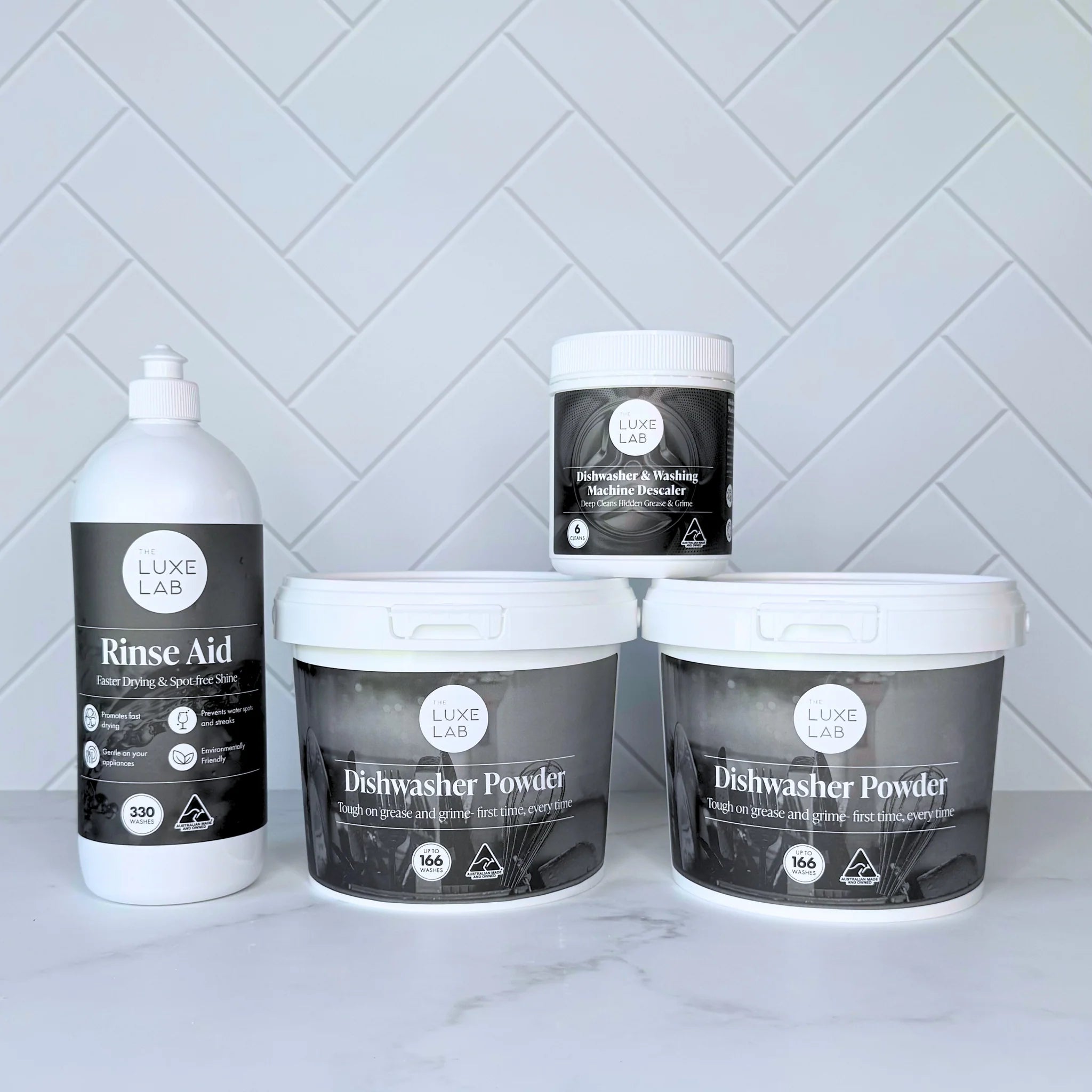 This bundle of The Luxe Lab Dishwasher Powder, The Luxe Lab Rinse Aid & The Luxe Lab Dishwasher & Washing Machine Descaler will last 12 months or 330 washes, costing justΒ 30Β cents per wash. Aside from offering great value, the range contains no nasty fillers so that your appliances are maintained along with your dishware.Β